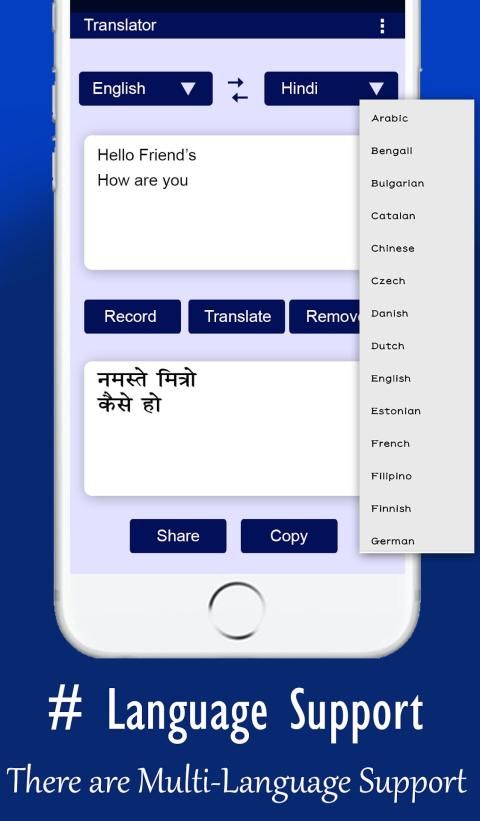 * Voice Translator can record your voice and then translate in to multiple languages.