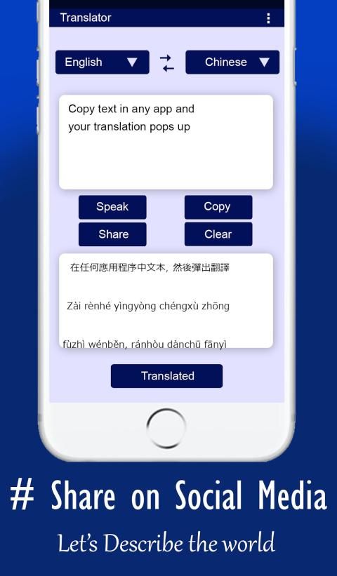 * You can Share translated results.