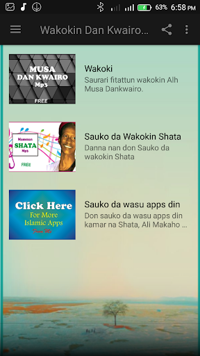 Wannan Manhaja ta Kunshi wasu daga cikin fitattun wakokin Alh Musa Dankwairo. Wannan application anyi shi ne don jin dadin ku tare da fadada yaduwar harshen Hausa a Duniya.