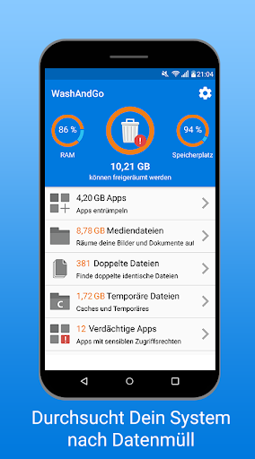 Telefon perlahan? Ingatan sentiasa penuh? WashAndGo membersihkan dan mengoptimumkan sistem Android anda! Pembersih percuma membebaskan ruang simpanan dan meningkatkan telefon pintar anda. Ini menghapus data sampah dan cache dan menyarankan untuk menghapus aplikasi yang sudah lama tidak digunakan.