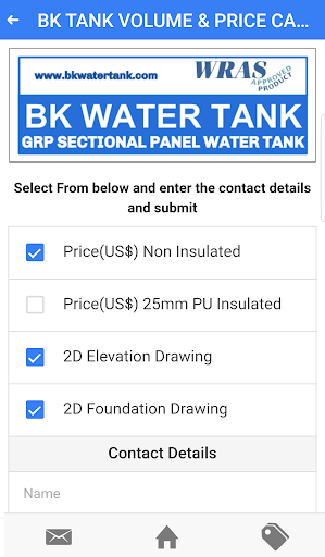 The tanks offered are BK SMC Hotpressed Panel Type WaterTanks,