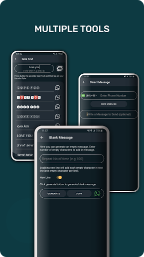 ● Dengan Alat pintar anda dapat menikmati alat premium namun percuma untuk membuat teks Emoji , Ulangi teks berkali-kali, mesej kosong, menghantar teks tanpa menyimpan nombor dan banyak lagi.
