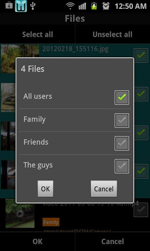 WiFizer uses an efficient access control mechanism. There are three entities: users, groups, and files. Users are authorized devices that access the server. A User can be a member of one or more groups. A File can be shared with one or more groups. For example, a file shared with a group called “Family” can be accessed by all members of the “Family” group.