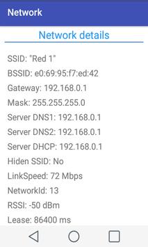 If you are connected to a wireless 802.11 network Wifi BSSID provides you with the following network data : IP Address Device Android, Mac , gateway IP address , subnet mask , DNS servers, DHCP server, link speed , power, lifetime session and more .
