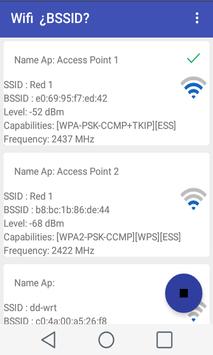 Wi-Fi BSSID you can identify and check power, frequency and type of security of the different access points of a network operating mode Infrastructure in which different Access Point share the same SSID , just knowing what the BSSID of the Access Point and assigning a name to identify this forever.