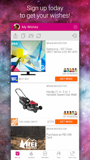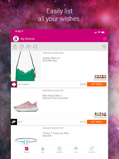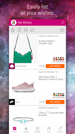 Buat senarai harapan lengkap dari semua jenama kegemaran anda, kongsi dengan keluarga dan rakan, kemudian tukar hadiah yang sempurna! Itu semua kehendak anda dalam satu senarai membeli-belah.