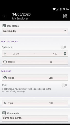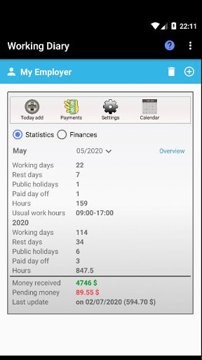 • semua orang mencari aplikasi perakam kerja (log kerja, lembaran kerja, waktu kerja, waktu kerja, pergeseran kerja), mudah dan mudah digunakan, sambil membiarkannya mencatat , hitung dan lacak hari dan jam dia bekerja, lupa nota, kertas dan pensil tulisan tangan.