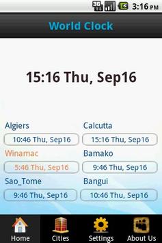 A simple and elegant World clock application which is used to view times of different cities around six continents of the world . Application provides a list of predefined time zones from which you can view up to six base cities.