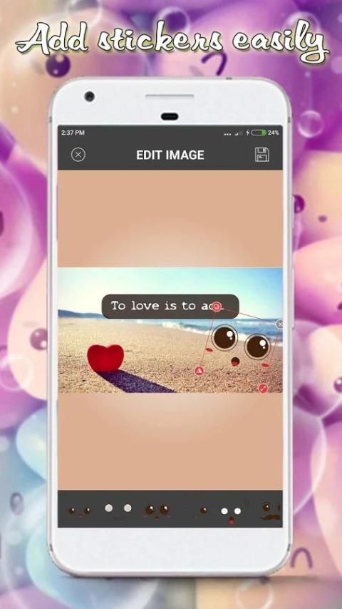 - Beside text, you can easily add emoji, stickers on your photos.