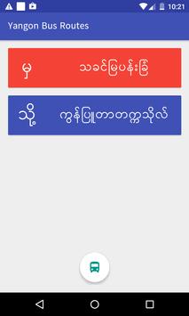 Yangon Bus Routes app can help you for new bus system in Yangon. Just select from and to , it will be calculated and show the guide. Allow you to search the bus stop by Zawgyi and Unicode.