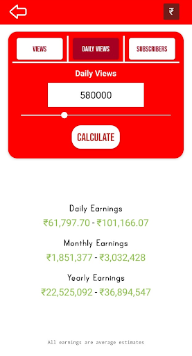Pendapatan dikira berdasarkan beberapa perkara yang berbeza, terutamanya jumlah tontonan yang anda dapat pada video anda. Aplikasi ini mengira berapa banyak wang yang dapat anda peroleh berdasarkan purata dari beratus-ratus saluran yang berlainan, julat CPM rata-rata dan aspek penting lain yang memberikan anggaran pendapatan.