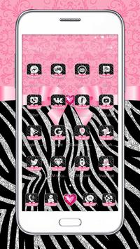 The gorgeous Zebra Launcher Pink Bow Theme is a free bow theme that will make your phone absolutely beautiful. The zebra theme features a gorgeous pink bow with a jeweled pink heart lined in silver. The pink floral and glitter zebra print complements the pink bow to create a gorgeous wallpaper for every girl. Each silver icon shines on the black zebra background with a cute matching pink bow. The custom silver metallic icons were hand picked for this jewel theme including a cute purse, butterfly and fireworks. What girl doesn't want one of those!! Every icon is decorated in diamonds and sparkles. If you like pink heart themes, you’ll love this! Download the Zebra Launcher Pink Bow Theme and make your phone gorgeous ❤