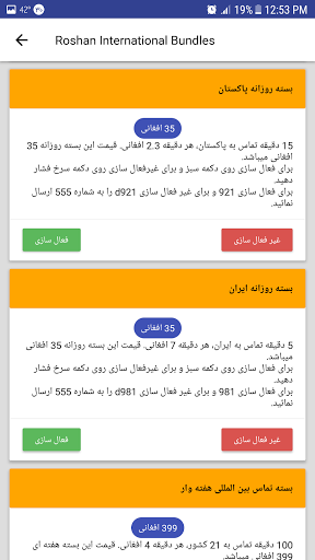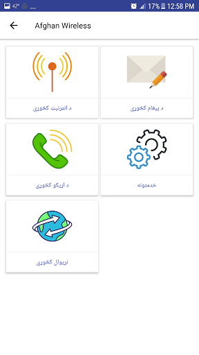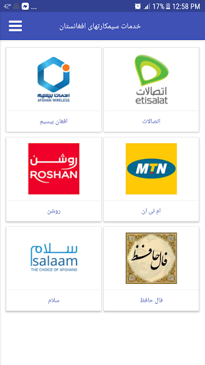 Jika anda ingin menggunakan pakej internet dan kenalan dan mesej yang disediakan oleh syarikat telekomunikasi Afghanistan dan menggunakannya di telefon bimbit anda, kemudian pasang aplikasi ini di telefon bimbit anda.Maklumat tentang cara mengaktifkan perkhidmatan dan pakej yang disediakan oleh semua syarikat, termasuk Wireless, Fittings, Bright, MTN dan HI, boleh didapati dalam aplikasi ini