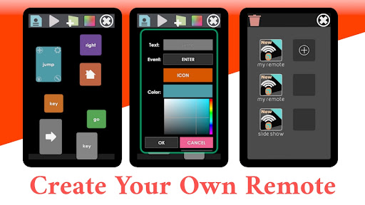 -Anda boleh membuat jauh anda sendiri dengan menambahkan butang kawalan (lebih banyak ciri ) dan sambungkan setiap butang dengan acara (kekunci)