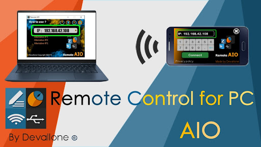 Mengubah peranti Android, telefon pintar, tablet, komputer atau Android TV ke dalam tetikus, papan kekunci, papan kekunci, atau WiFi) tanpa wayar untuk komputer anda.