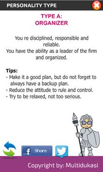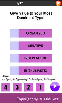 Personality Test is a test that aims to identify the type of personality. Test consists of 12 questions.
