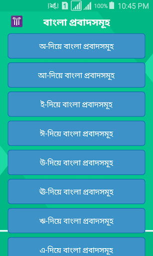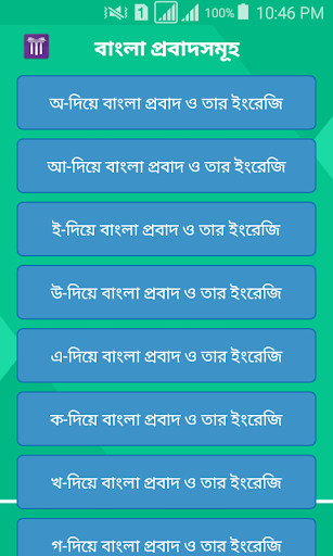 Bengali Proverbs boleh didapati di Bangla dan terjemahan Inggeris dengan terjemahan dalam Bengali dan Inggeris.Alphabets Bengali disusun dengan sewajarnya.