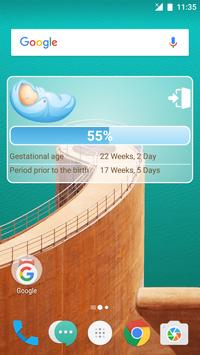 You can install widgets with a minimum size of 3 x 2. The widget will show the duration of the pregnancy and how much it is left before delivery on a weekly basis.