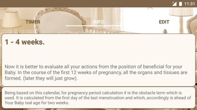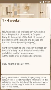 The application will help you to learn how your baby develops during pregnancy. Also describes the condition of the future mother, what will happen to her and what should she pay attention to. Information is given by pregnancy development weeks.