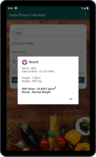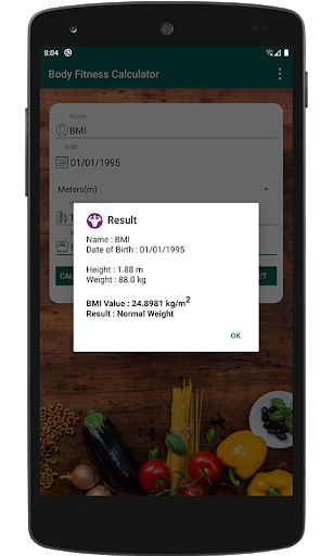 Anda perlu memasukkan nama dan tarikh lahir anda sama sekali setiap kali menggunakan Kalkulator Kecergasan Badan ini - aplikasi Android untuk mengekalkan sejarah dalam BMI dikira dengan menggunakan aplikasi Android ini.