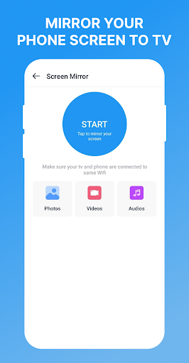 It helps you mirror your small phone screen to a big TV screen. Accessing various media files like photos, videos, music, mobile games and others on big screen is a breeze. You can easily share screen with your friends or family.