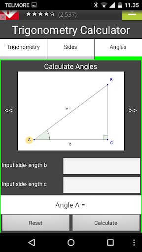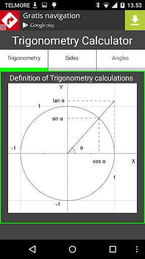 Untuk mengira sudut di segitiga, kalkulator menggunakan sinus, kosinodan tangen.