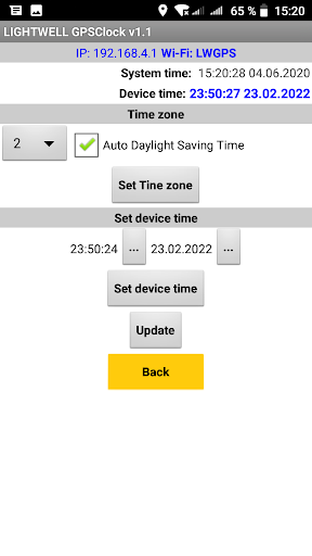 Using this application you can view information about the device, the state of GPS synchronization and change the time zone settings & DST