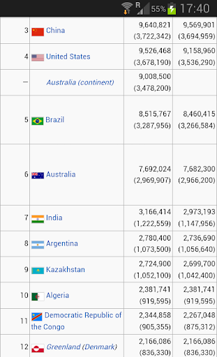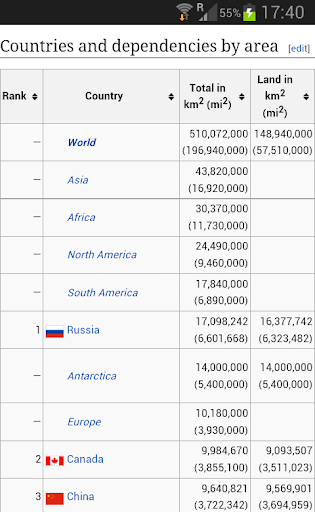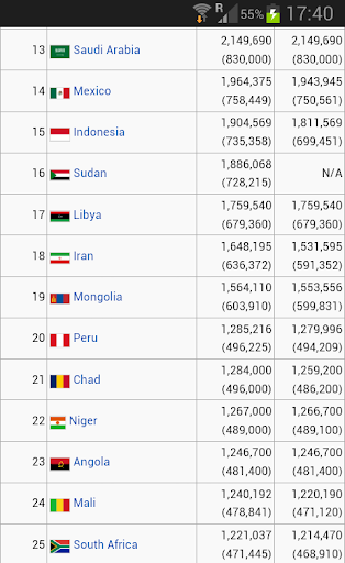 Juga termasuk semua bendera negara dan senarai negara-negara terbesar dan terkecil di dunia mengikut kawasan di laman Wikipedia.