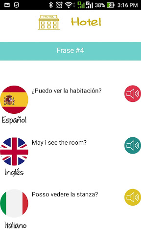 Con esta aplicación el usuario podrá encontrar la traducción en español, inglés e italiano de las frases más comunes en lugares turísticos como aeropuertos, hoteles y en una conversación.