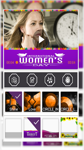 Pembuat status video Hari Wanita dengan lagu.Aplikasi ini mempunyai ciri untuk membuat status video foto Hari Wanita hanya beberapa langkah.