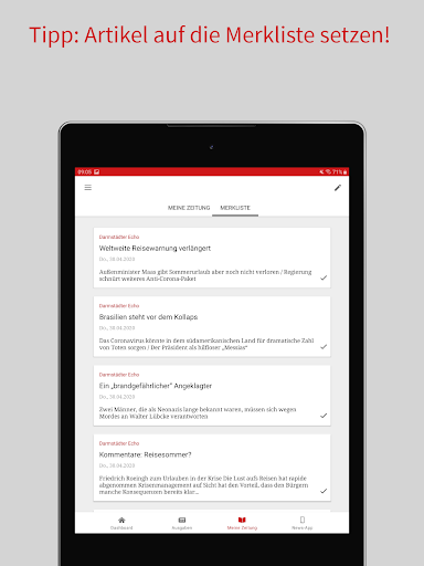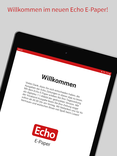 Percuma memasang aplikasi ECHO E-Paper Kiosk pada tablet atau telefon pintar anda. Anda mempunyai peluang untuk menguji e-kertas selama tujuh hari selama tujuh hari dan tanpa kewajiban. Selepas itu anda boleh membeli perbelanjaan individu secara langsung dalam apl untuk harga 1,99 € atau menyimpulkan langganan