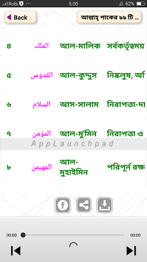 Learn Asma Ul Husna or 99 names of Allah with audio and bangla meaning