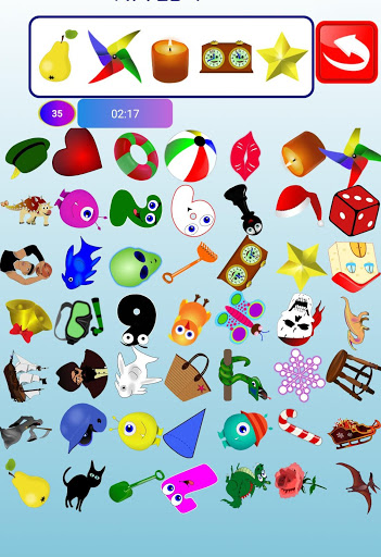 - Mod Asas: Menemui 15 imej di papan, dengan tiga peringkat (semakin tinggi kesukaran anda mempunyai lebih banyak gambar pada skrin anda).