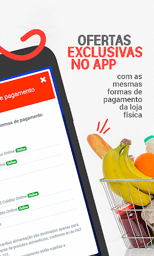 Conheça o aplicativo e faça suas compras de supermercado online e aproveite ofertas exclusivas no APP com as mesmas formas de pagamento da loja física, além de poder pagar online, caso a loja escolhida oferecer esta opção.