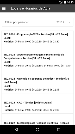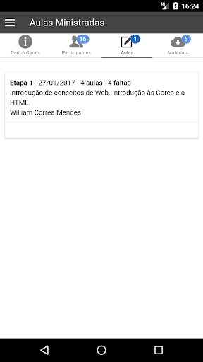 * Acesso às turmas virtuais por ano e período letivo (nas turmas virtuais ainda é possível ver as informações das mesmas, seus participantes, aulas dadas e baixar os materiais de aula);