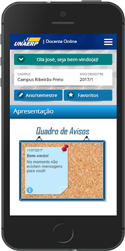 O Docente Online da UNAERP agora está na palma de suas mãos na versão Docente Online Mobile. Além de todas as facilidades de sua versão Web o Docente Online Mobile conta com a melhoria de não precisar realizar login em todo acesso, e você receberá mensagens, notificações e confirmações de suas atividades diretamente em seu dispositivo móvel.