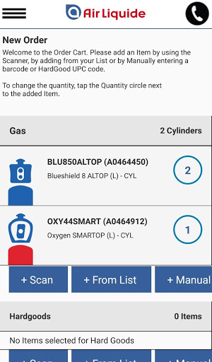 - Scan bar codes on cylinders or product packaging for quick and easy ordering