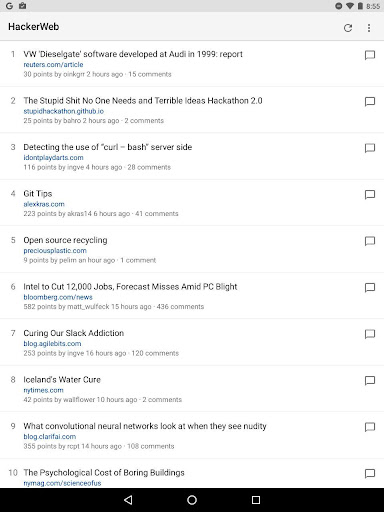 Baca Berita Hacker (https://news.ycombinator.com/) dengan antara muka pengguna yang mudah, bersih, dan boleh dibaca.