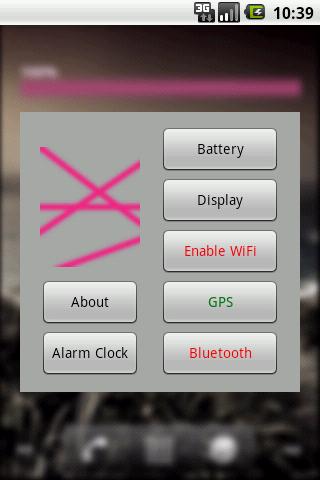 Pink Line Battery Widget shows the exact battery level. Pressing this widget allows to change Battery, Display, WiFi, GPS and Bluetooth Settings.