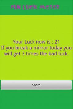 Worried about not knowing how your day will go until its too late? Well now we have the solution! This app will try to predict your luck for the day and maybe help you have a better day. Better still you can share your luck messages on twitter or FaceBook and have fun discussing it with your friends and loved ones.