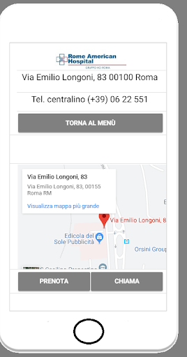 Per ogni struttura del gruppo è disponibile la mappa con le indicazioni stradali, un pulsante chiama per ottenere informazioni telefoniche ed un pulsante prenota per effettuare direttamente la prenotazione.