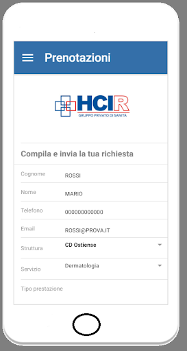 Questa app è stata sviluppata come sistema di gestione delle prenotazioni del gruppo HCIR. La app consente di inserire la prenotazione che verrà successivamente inoltrata ad un back office che riceverà via email la richiesta e risponderà comunicando giorno ed ora della visita.
