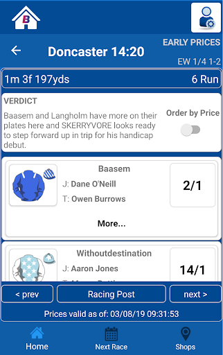 It's like having a little portable price finder - but with some added tips courtesy of the Racing Post.