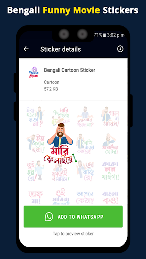 Jika anda sedang mencari aplikasi Pelekat Filem Lucu Bengali untuk apa-apa aplikasi untuk menyatakan dengan cara yang berbeza untuk meminta perasaan anda di Bengali di sini adalah aplikasi dengan koleksi besar pelekat Bengali. Sekarang mengejutkan rakan-rakan anda menggunakan pek pelekat muktamad membuat perbualan anda lebih lucu dan keluar dengan berkongsi pelekat Bengali pada Whatsapp.