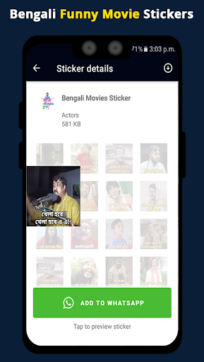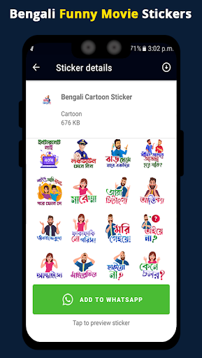 Ini aplikasi pelekat meme ini untuk apa-apa-aplikasi mengandungi lebih daripada banyak pelekat meme lucu berkualiti tinggi. Kami akan menambah pelekat meme baru juga untuk memastikan anda dikemas kini dengan trend terkini. Jika anda sedang mencari aplikasi Pelekat Filem Lucu Bengali untuk apa-apa-aplikasi untuk berkomunikasi dengan rakan-rakan anda, orang yang disayangi maka ini adalah aplikasi terbaik untuk pergi.