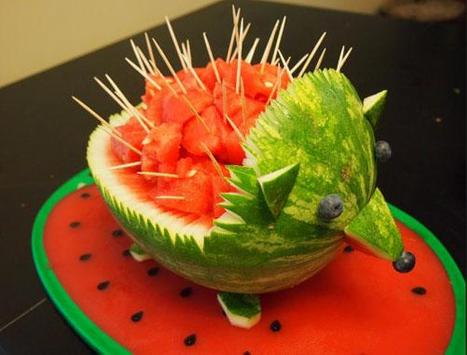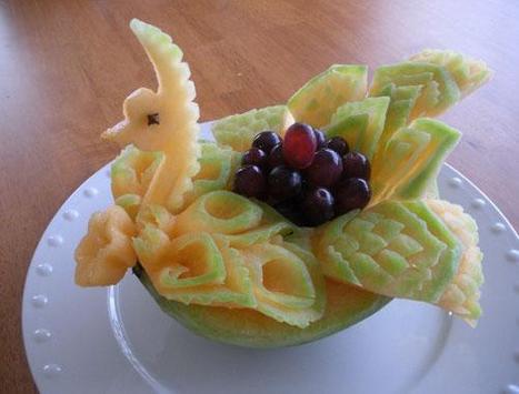 The deft artists can make whole fruit turn into a sculpture that has high artistic value. In the Art of Fruit Carving, one will sculpt and carve a piece of fruit using a fairly simple tool, ie, cutter, jagged knife and toothpick if necessary.