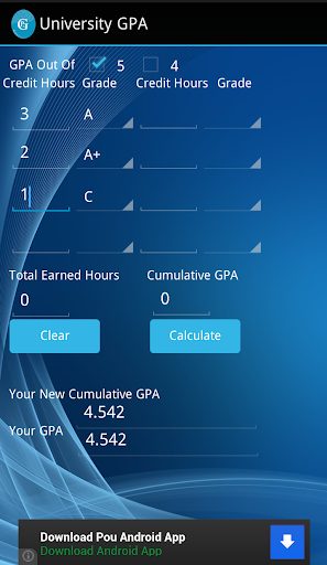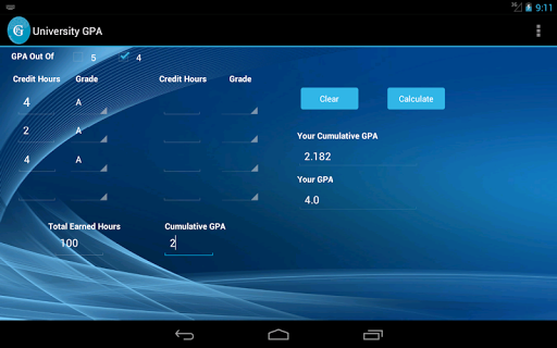It's an app used for college students to calculate the Grade Point Average (GPA). High level of accuracy. Provide to the users a simple and easy design to understand. There are no bugs.