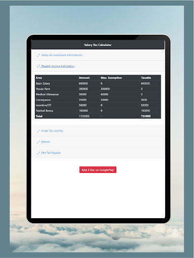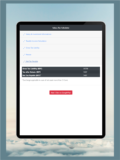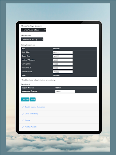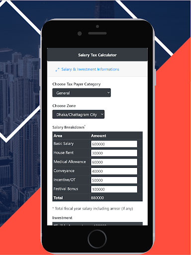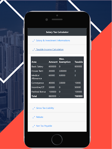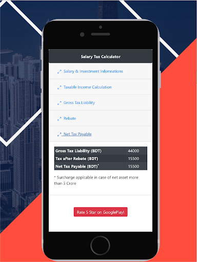 Kalkulator cukai pendapatan adalah aplikasi percuma untuk mengira cukai daripada gaji mengikut garis panduan yang disediakan oleh NBR dan Ordinan Cukai Pendapatan 1984 Bangla. Ia termasuk kemas kini terkini yang diumumkan mengenai belanjawan untuk FY 2020-21. Oleh itu, dengan menggunakan ini boleh mengira cukai anda yang akan membantu membantu anda menyediakan fail pulangan cukai pendapatan anda. Pada masa ini kalkulator cukai ini hanya akan bekerja untuk pendapatan daripada gaji.