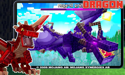 This application adds to our beloved world of Minecraft Pocket Edition, more than 100 different dragons, items, armor, scales, weapons, picks, axes, skins, skinseed, new mechanics and behavior of characters and mobs, a whole new dimension.