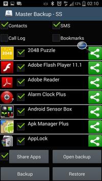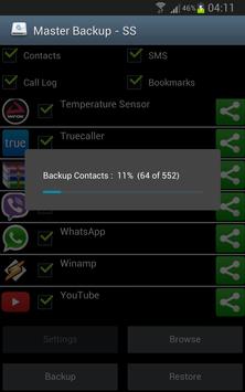 Master Backup is tool helps you to backup and restore your contacts, SMS, CallLog and browser bookmarks.